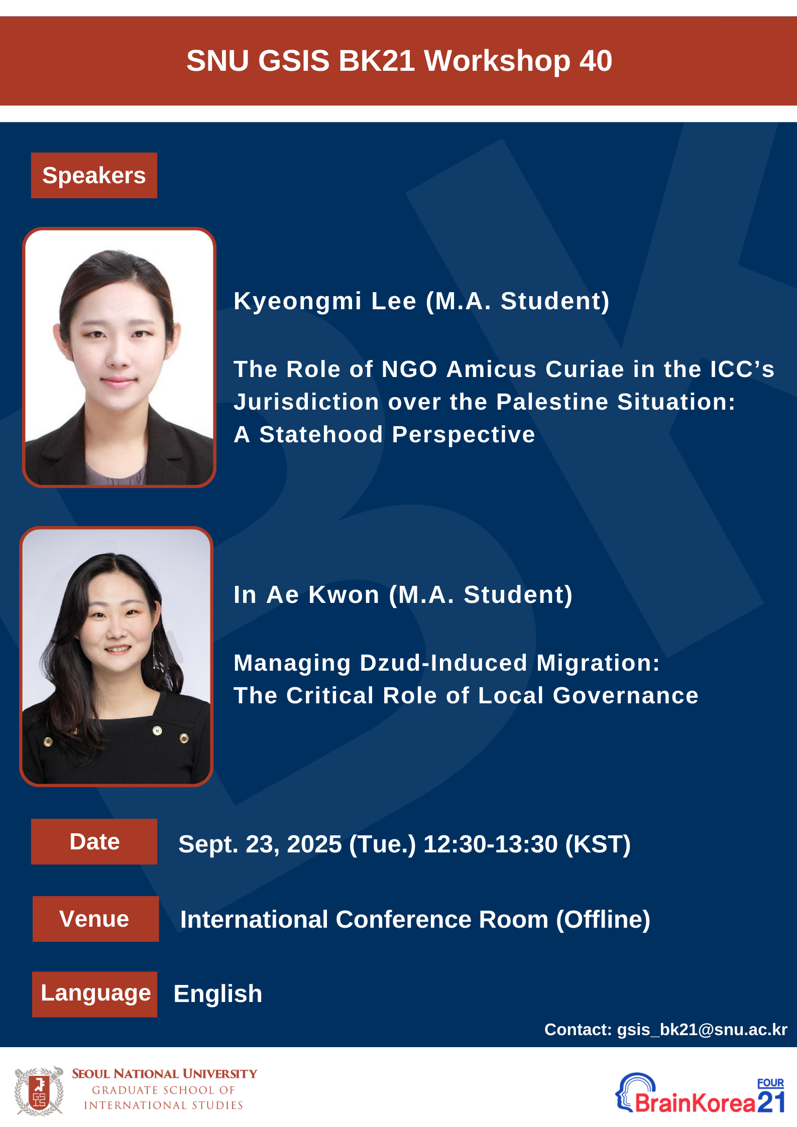 [SNU GSIS BK21] Workshop 40 (Fall 2025 - September) - September 23 (Tue.) 12:30 pm - 13:30 am (KST)